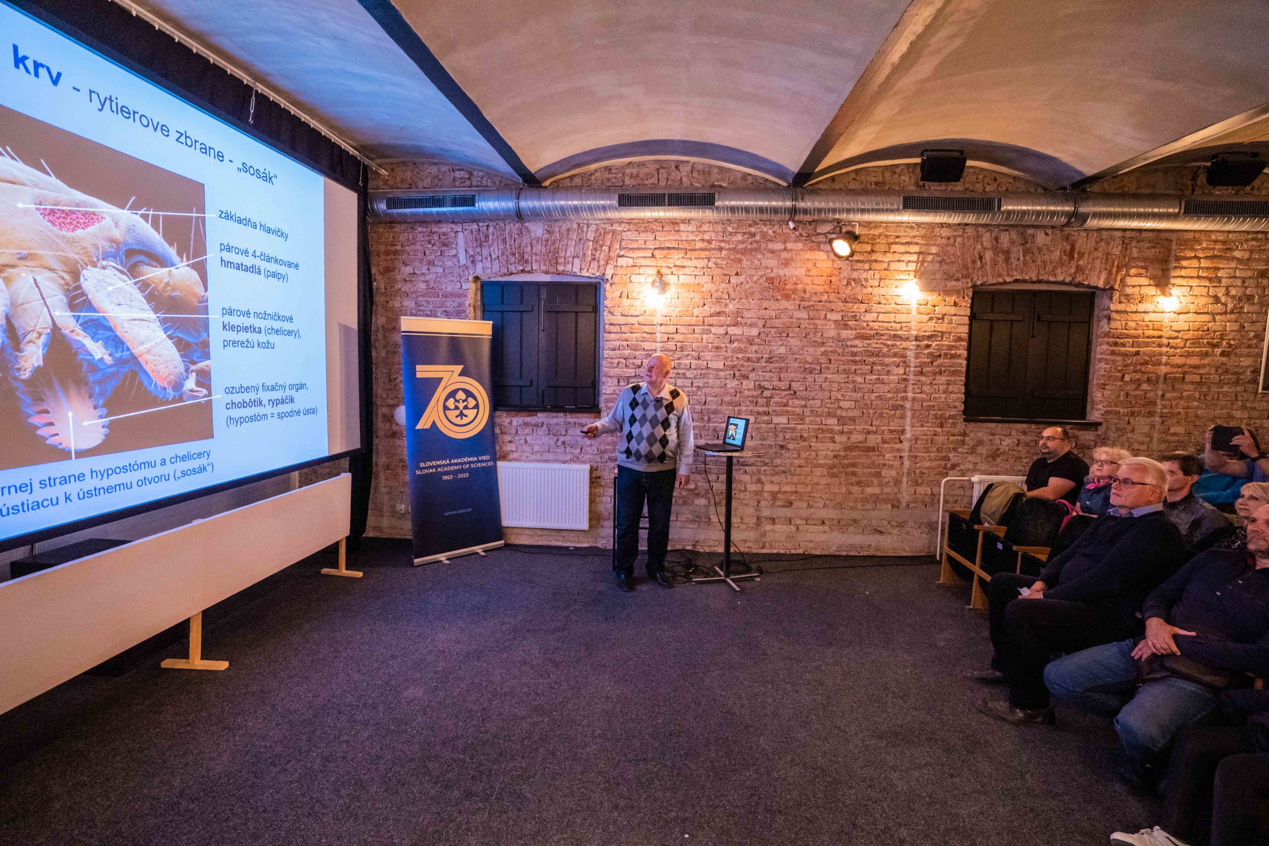 Poznáte človeka, ktorý by dokázal ešte aj o krvilačnom kliešťovi napísať rozprávku a hľadať jeho dobré vlastnosti? Veľa ich určite nenájdete, no v Košiciach jeden taký prišiel na marcovú vedeckú kaviareň. Takýmto zapáleným kliešťovým romantikom je vynikajúci odborník, bývalý dlhoročný riaditeľ Parazitologického ústavu SAV a člen P SAV, jeden zo zakladateľov tradície košických akademických koncertov, výborný rozprávač a popularizátor, košický „guru“ popularizácie a výskumu kliešťov známy aj z televíznych obrazoviek doc. MVDr. Branislav Peťko, DrSc., ktorý momentálne pracuje ako vedúci Centra aplikovaného výskumu UVLF v Košiciach.